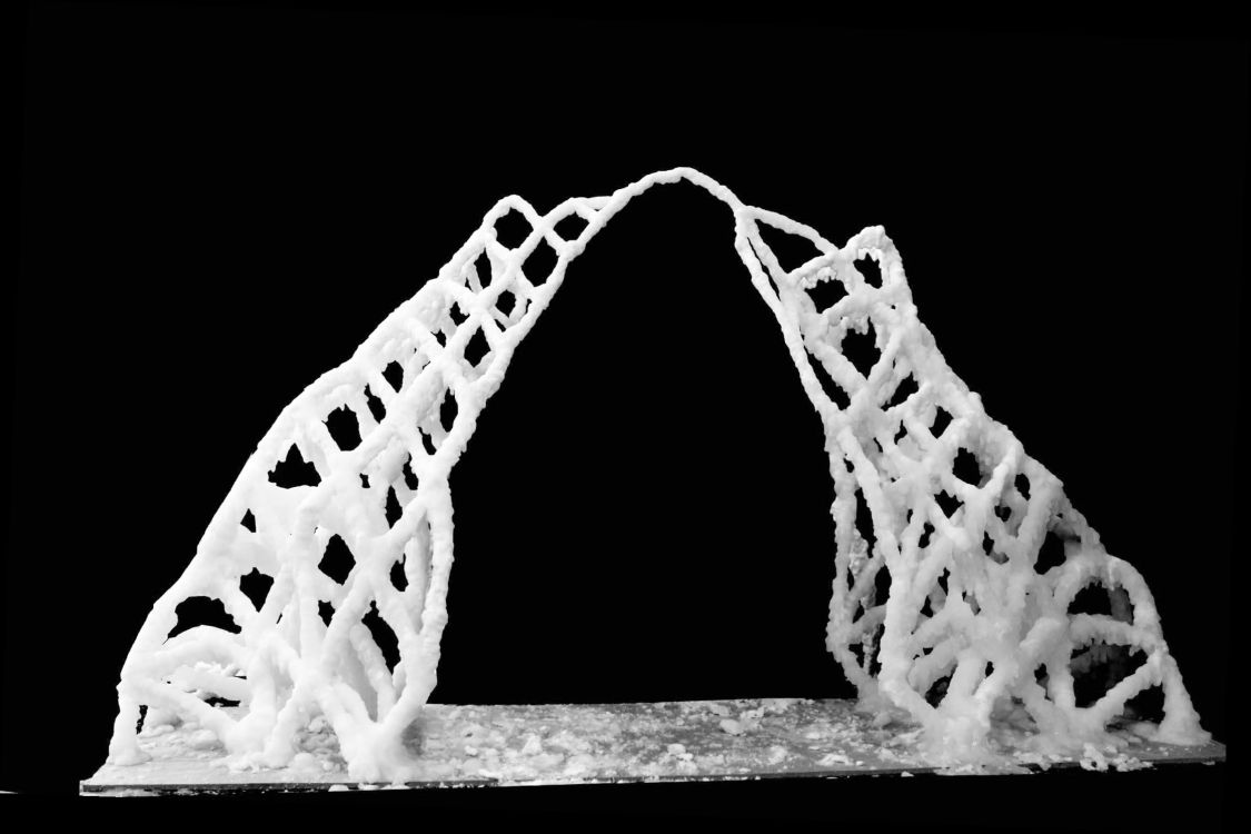 This research focused on material behaviour using sodium acetate deposition, targeting to build a light, strong bridge of one meter spanning.