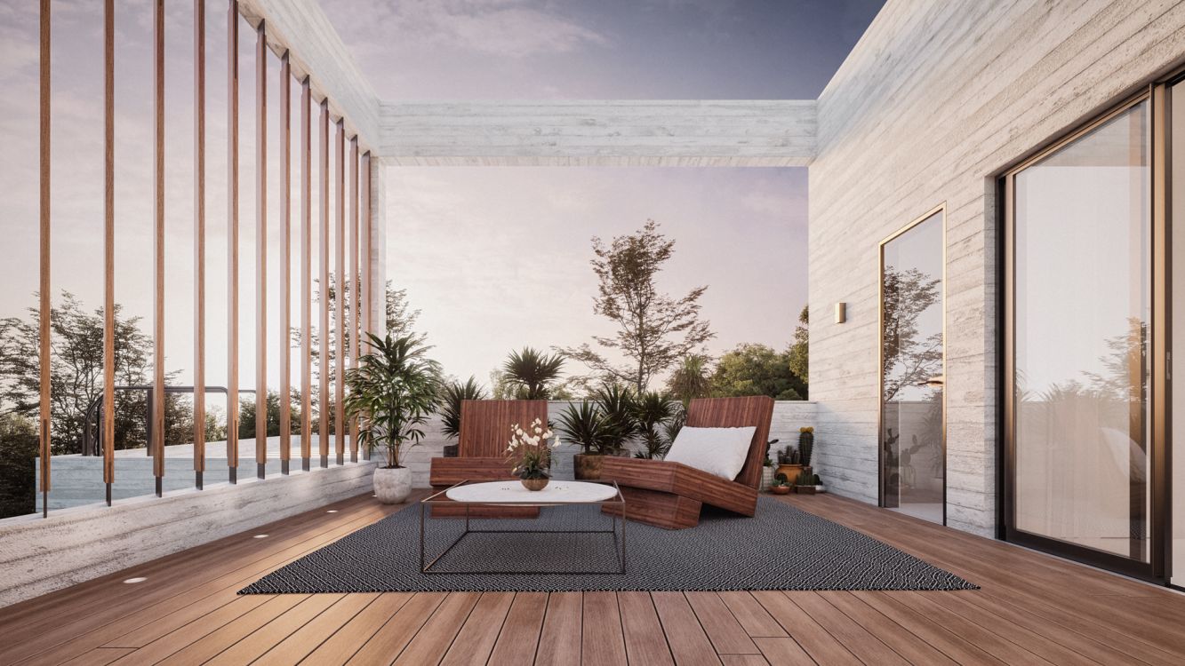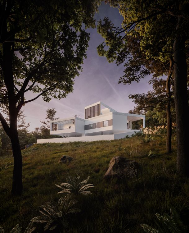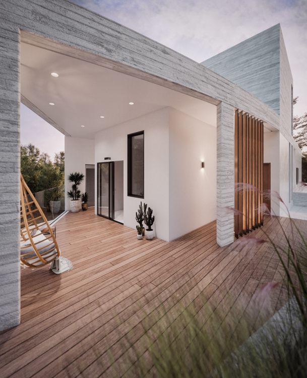There is a precise distinction between the two houses, which while they share the same design language, they are technically autonomous. This division is expressed volumentrically, and it is orchestrating in all three dimensions, securing the privacy for every space, internally and externally.