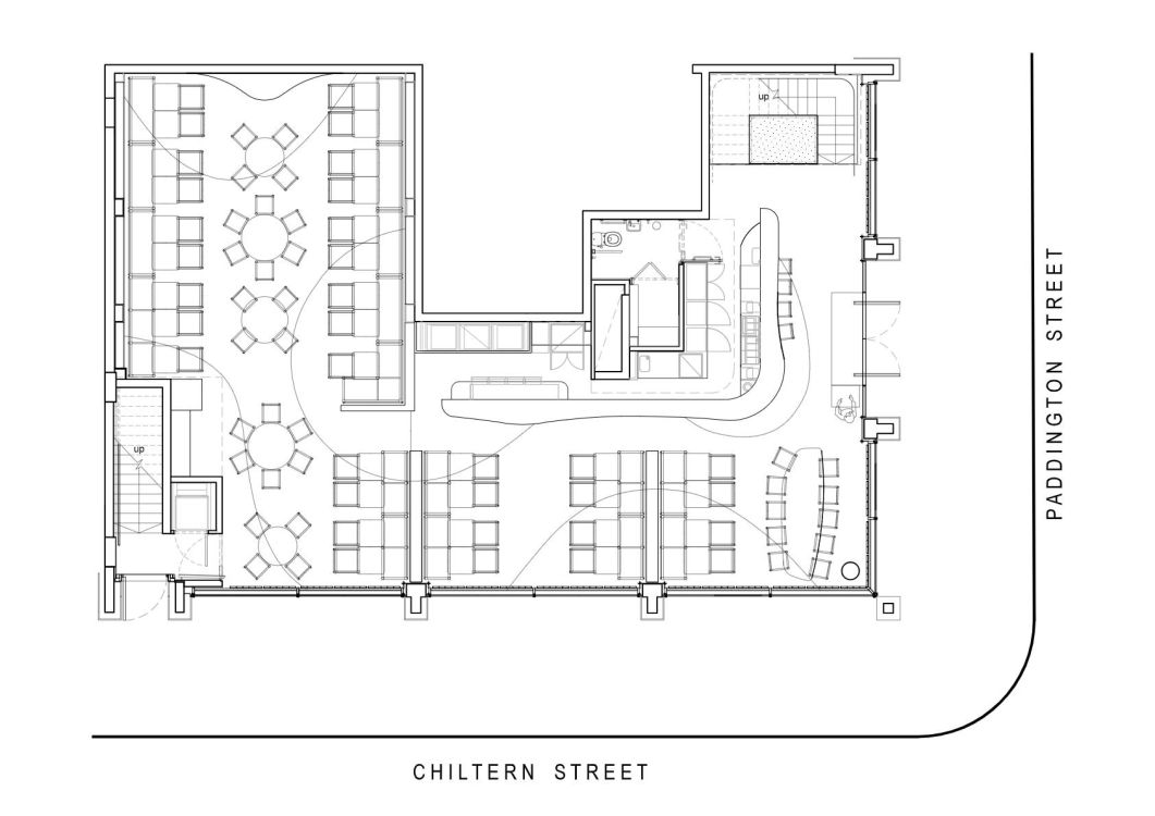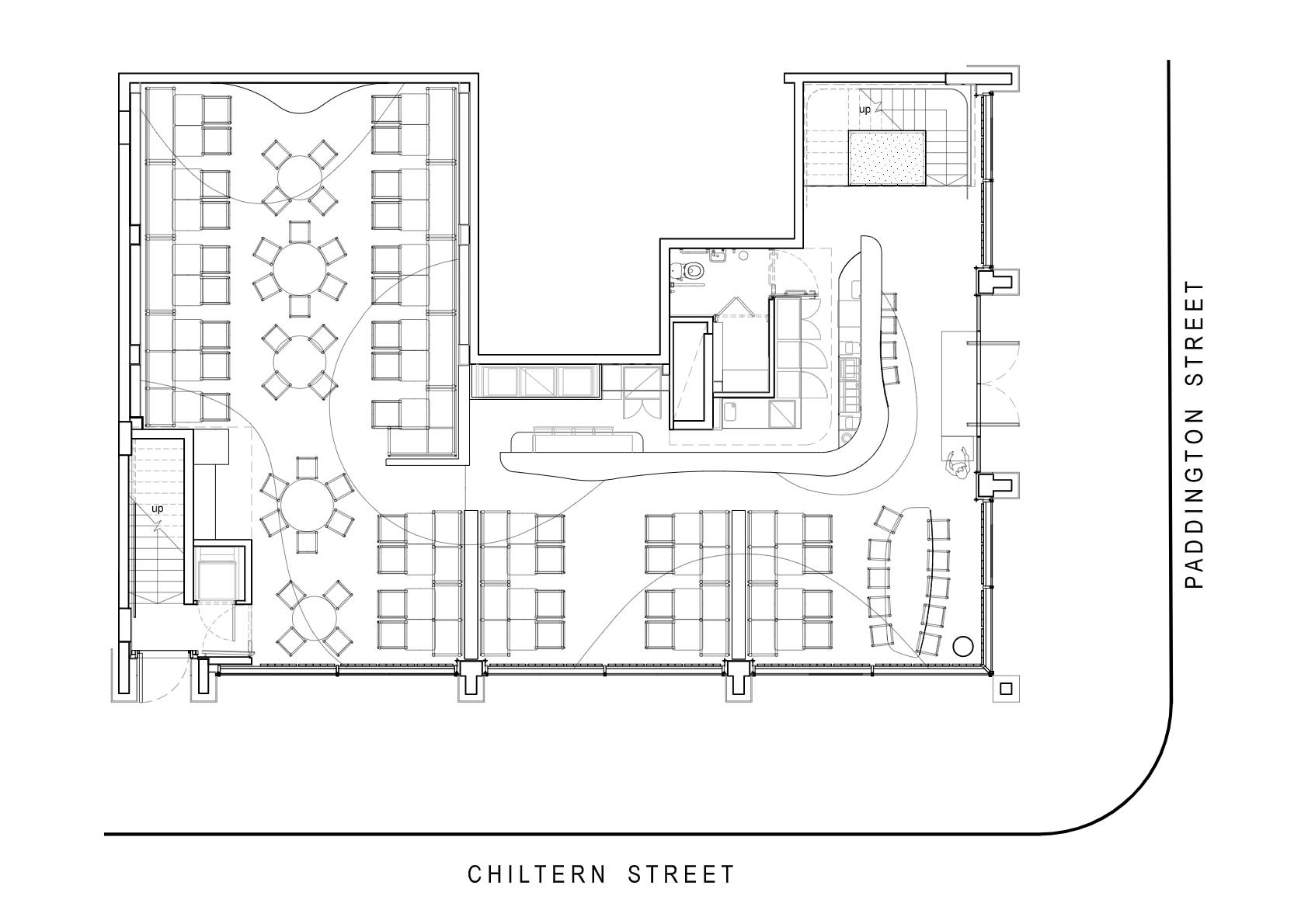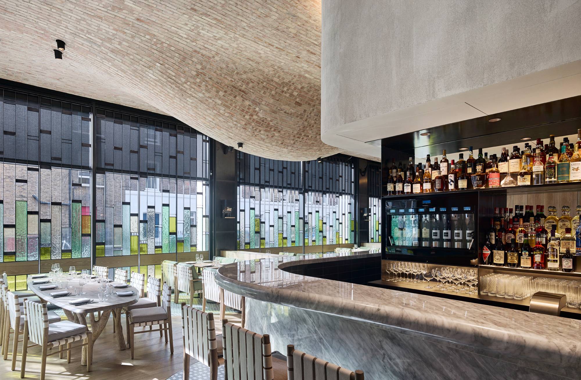 The restaurant is made up of 110 dining covers seated on low-backed bespoke banquettes and arm chairs on the ground floor served by a carved solid marble finishing kitchen.