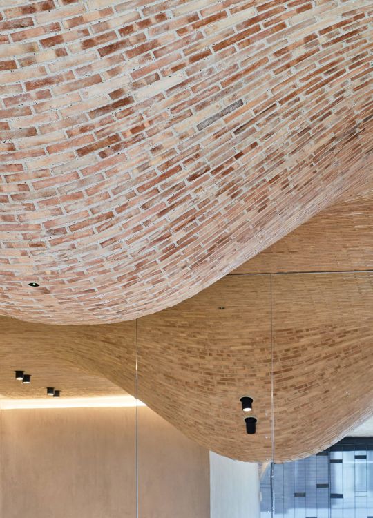 The space is sculpted to stimulate, the forms are organic and the materials raw and refined. The ceiling is handmade ‘antico mattone’, formed and warped like the inside of a traditional pizza oven. This sets a visually dynamic atmosphere. Along with brick, marble and timber, burnt steel is dominant and relates back to the restaurant’s name ‘Fucina’, meaning Forge.