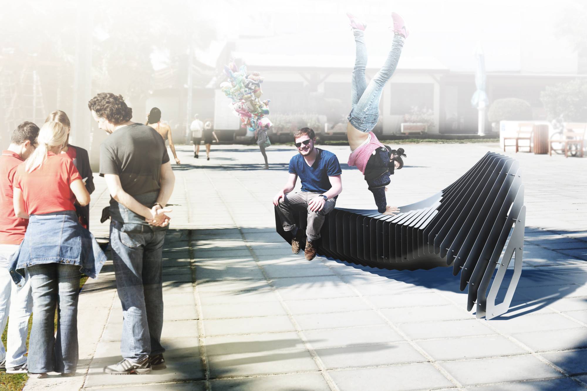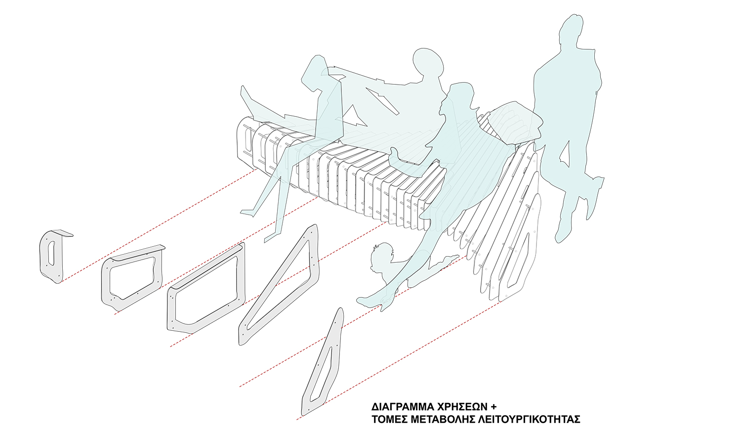 This project has been developed to create an outstanding-designed structure which functions as a multifunctional bench for sitting and quick resting. The structure is designed to serve the swimmers and other passers who stroll on the boardwalk along the Makenzie beach in Larnaca, Cyprus.