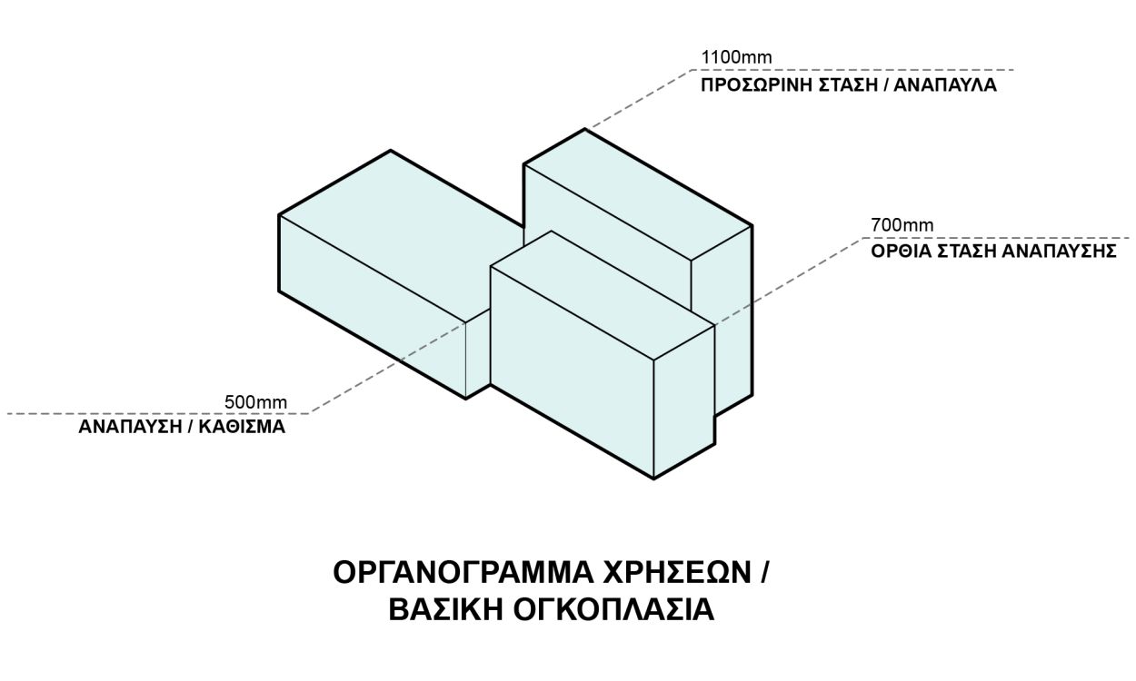 The form's approach has been sourced by the linear flow of the circulation along the beach and the triangular notion “stop-sit-relax”. On the intersection of this combination, the organic shape of the furniture is created, highlighting the dynamic of the moving flow combined with the range of alternative relaxing poses.