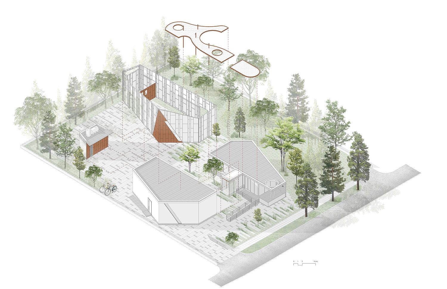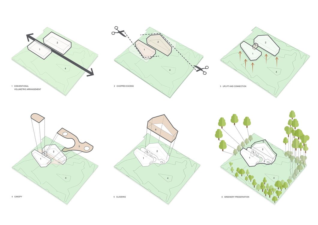 The NCCM consists of two building volumes with a distinct character and a lightweight canopy in-between, as a means of interconnection and projection of outdoor events.