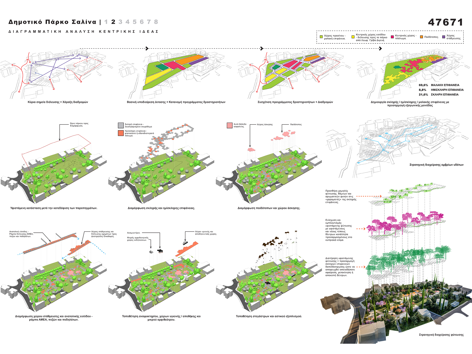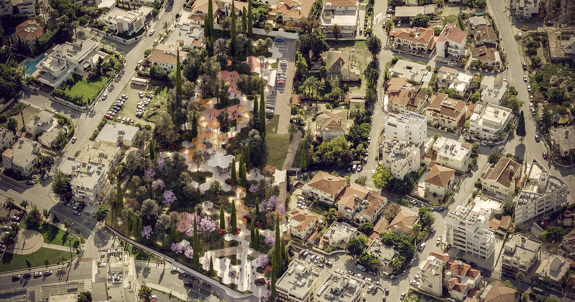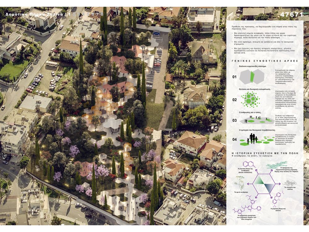 The project proposes a park in the heart of city of Larnaca designed to become a point of reference, an attraction for meditation and relaxing, and a place for activities that will serve - beyond the surrounding neighbourhood or the further area - the entire city.