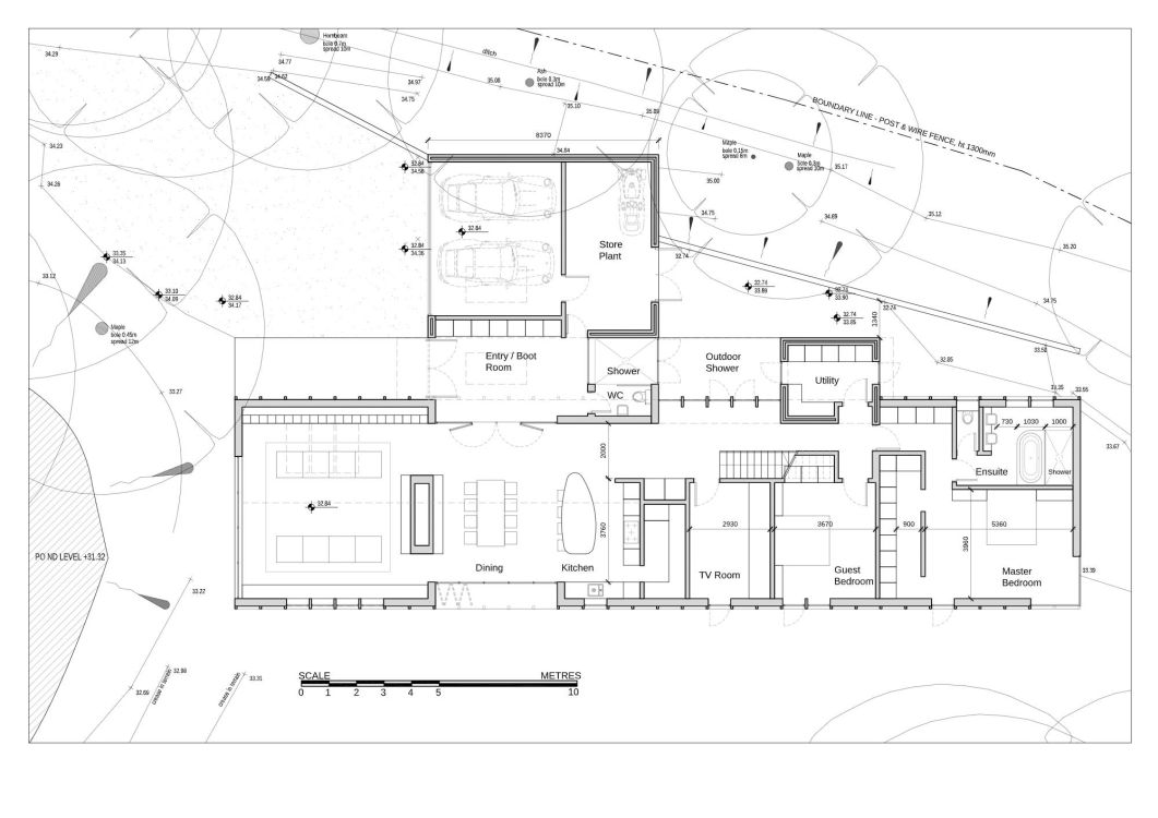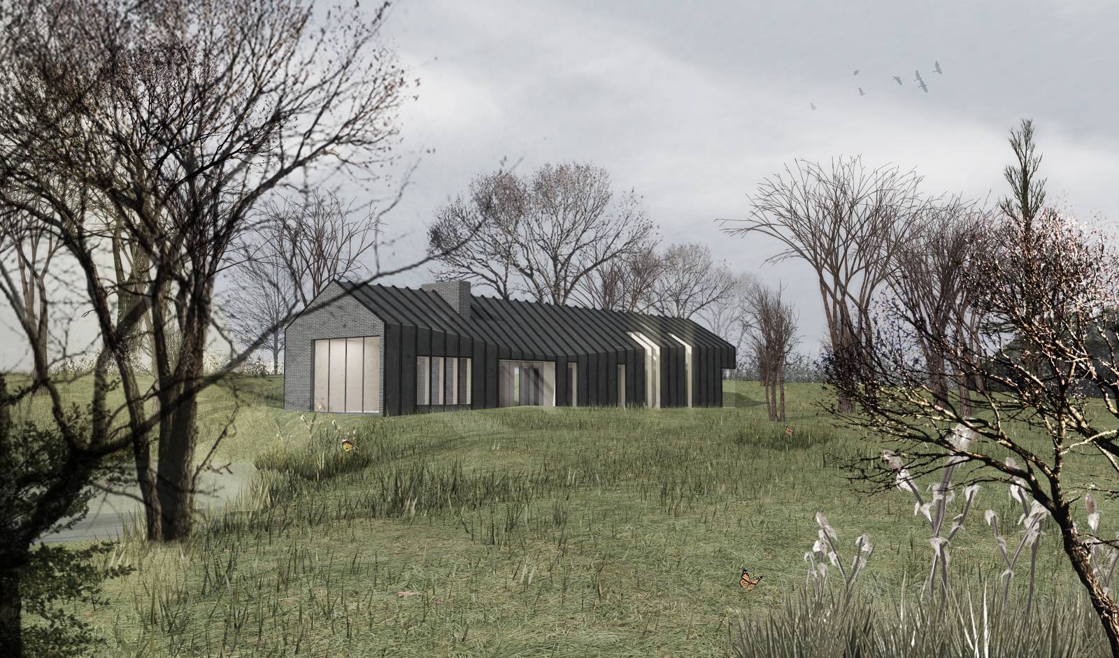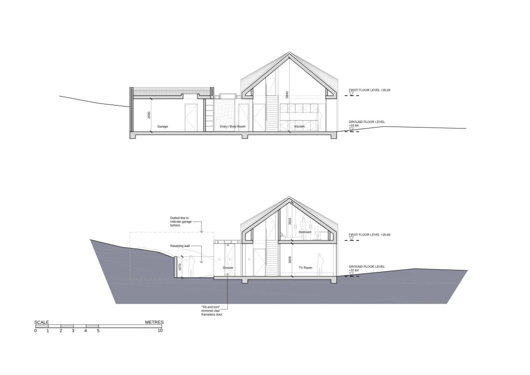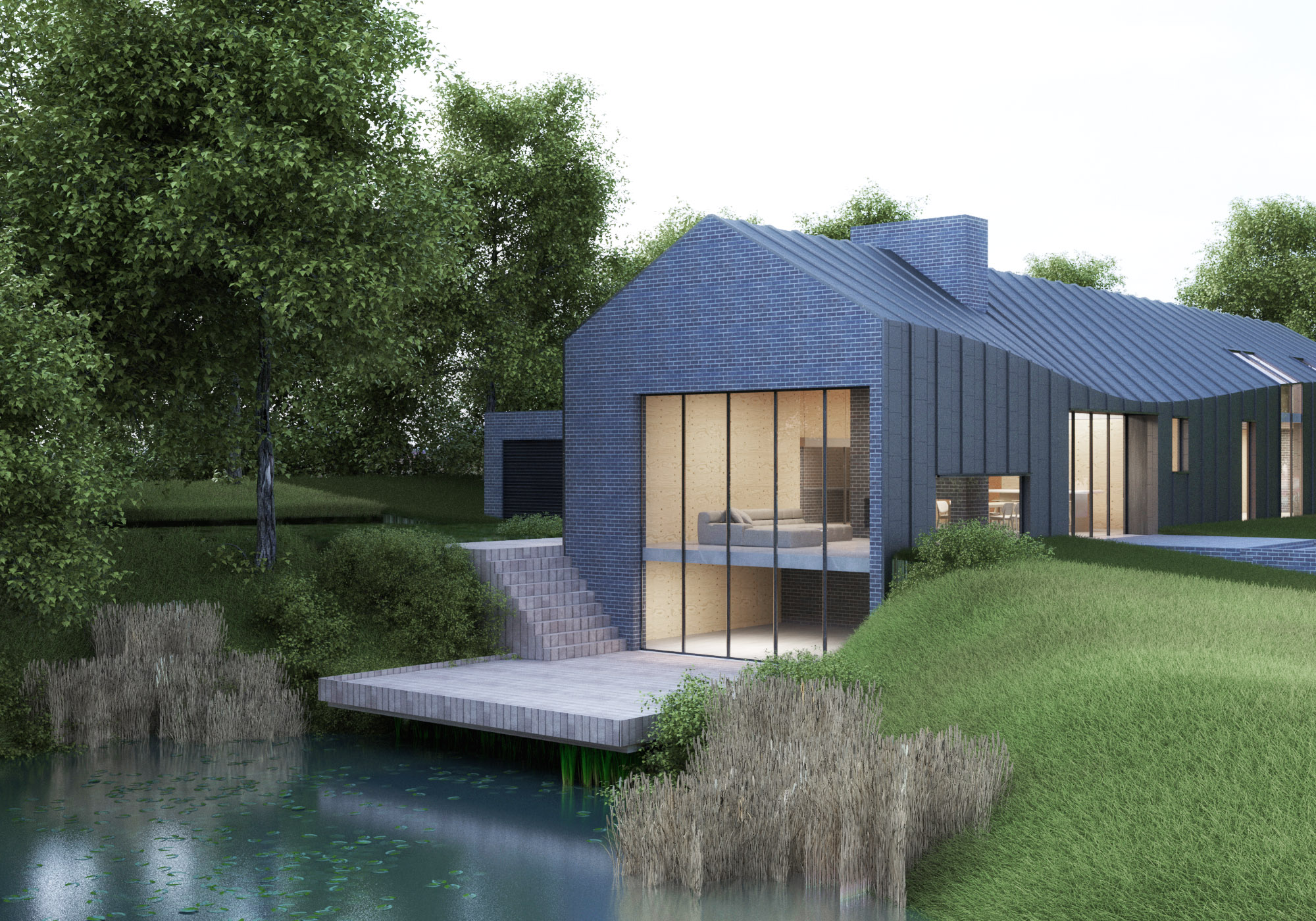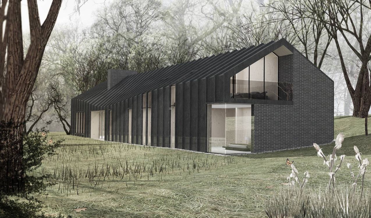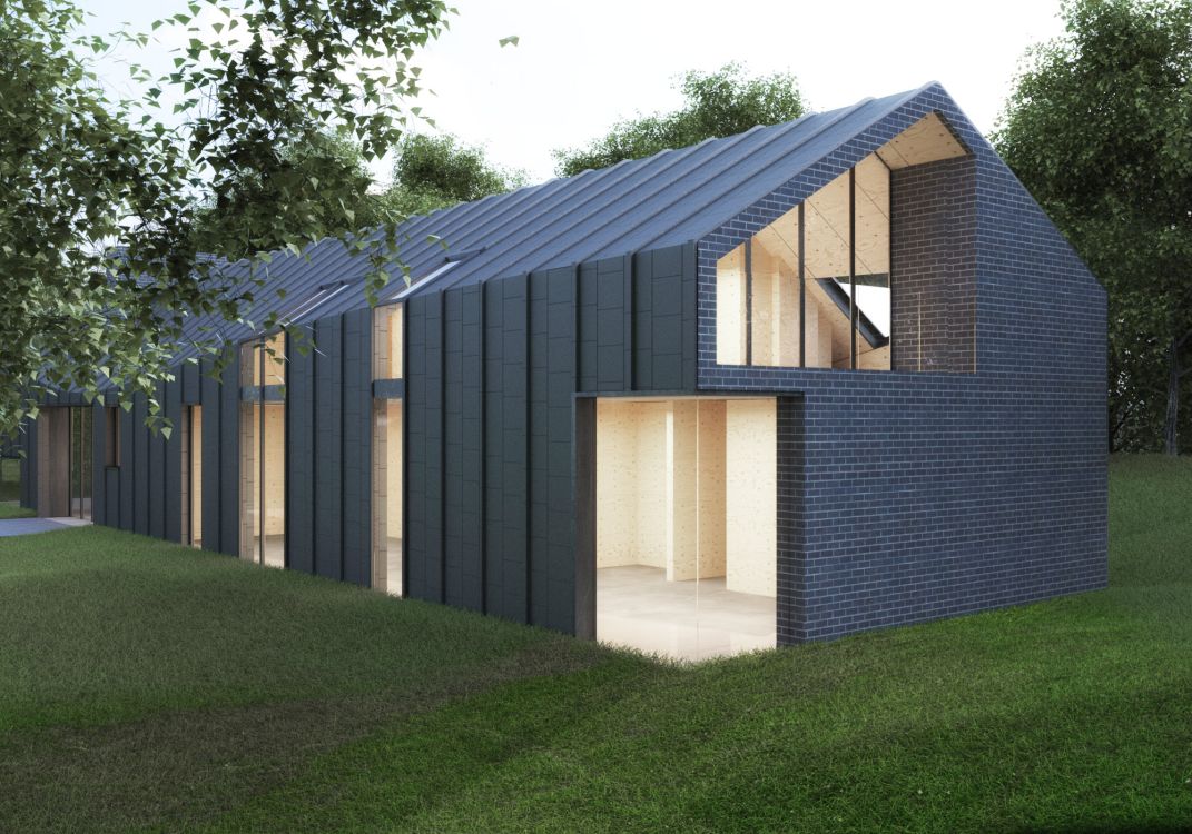 Therefore, the majority of the residence is clad in colour coated metal panels with the two, end elevations and garage in locally sourced brick.