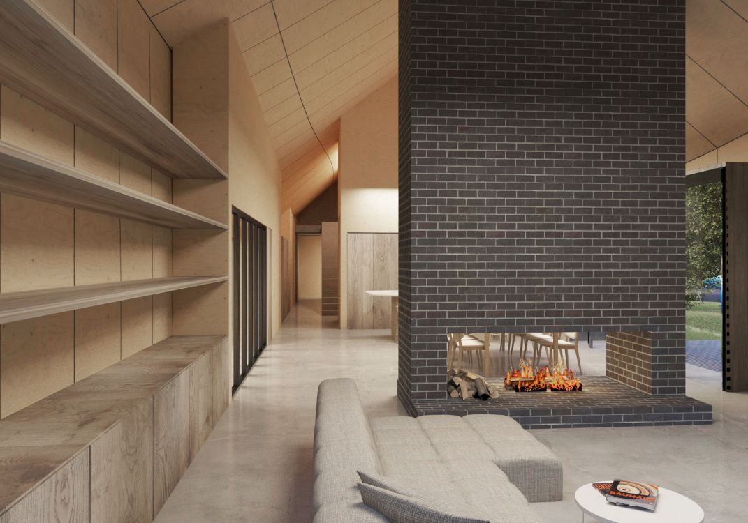 The scale of Sky Barn still reflects that of a Kent barn with a subtle curved eave line that emulates the rolling forms of the surrounding Kent landscape and constantly changing sky.