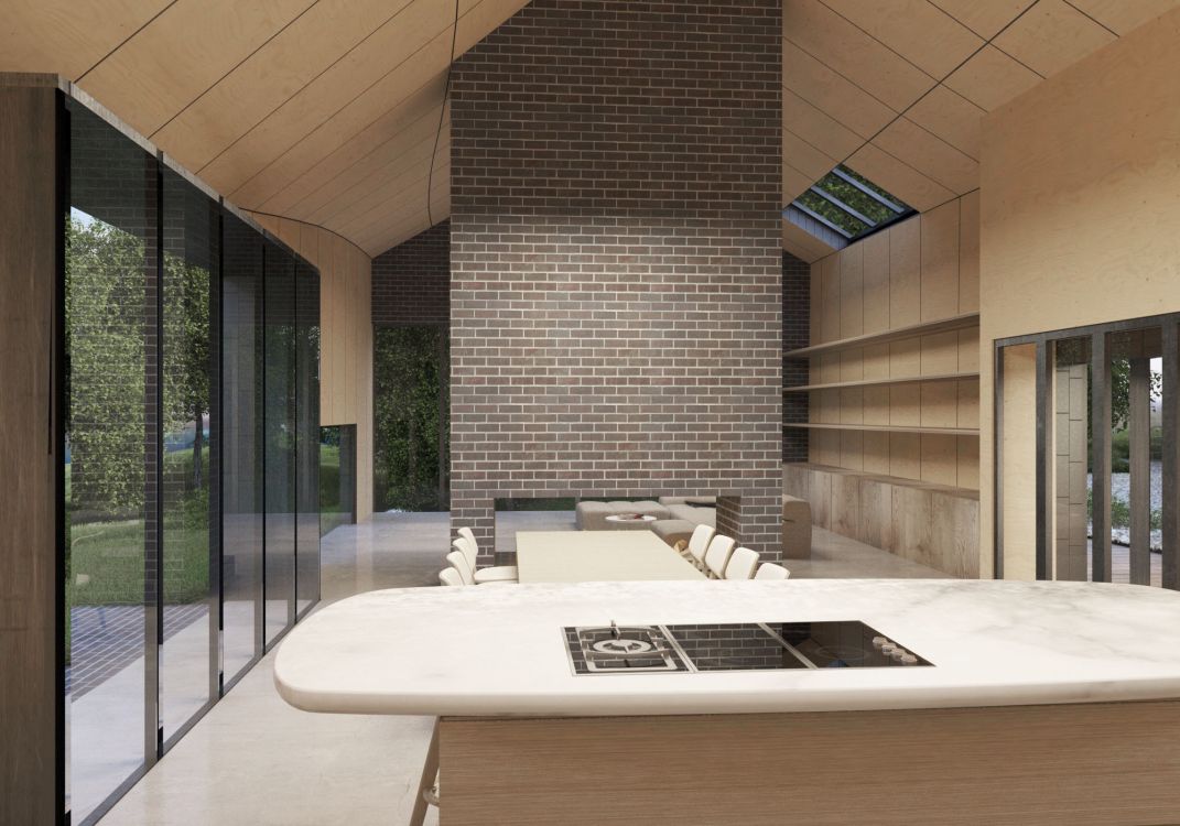 Beyond the inspiration of the ‘form’ and vernacular of the Kent barn, contemporary materials are used to blend the building in a seamless way with the landscape, sky and colours of the changing seasons.