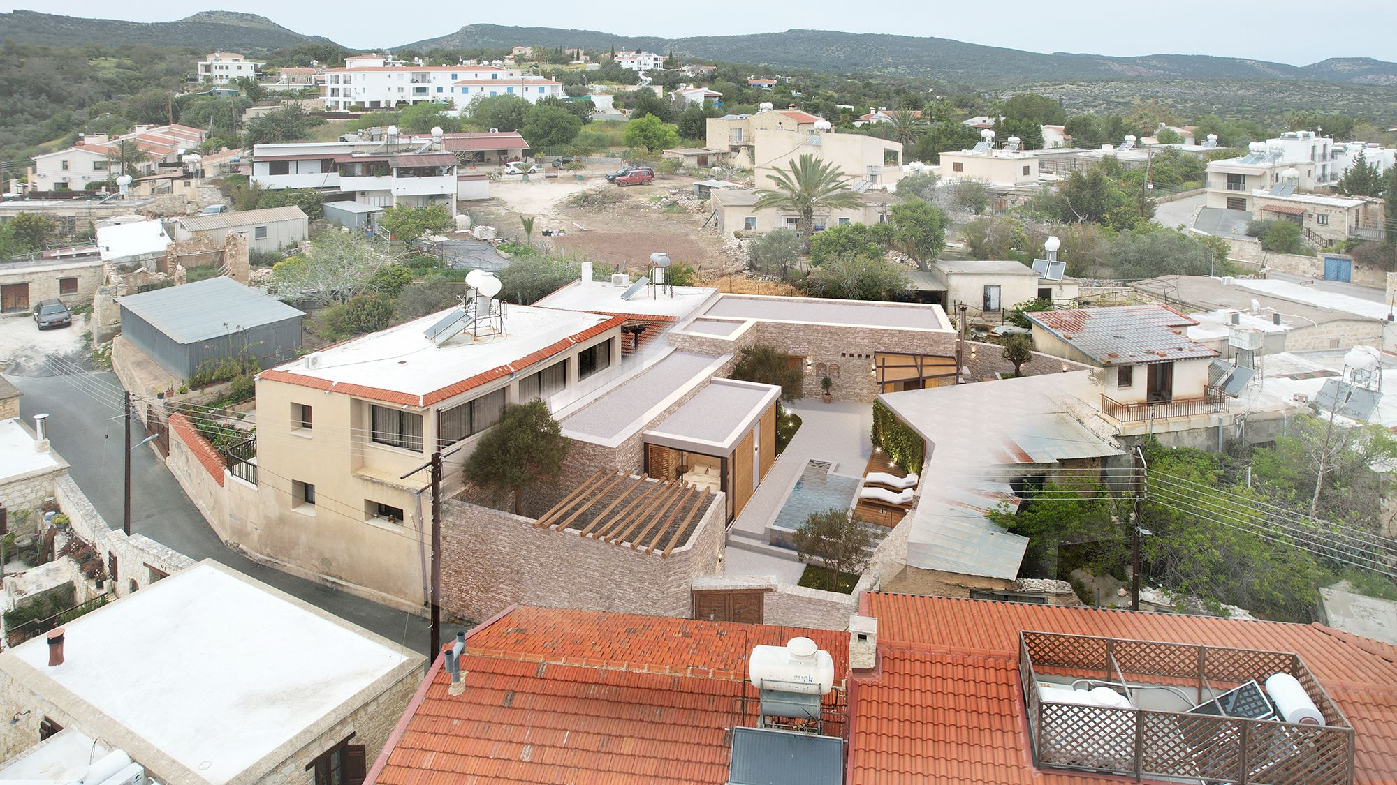 The design blends the Cypriot traditional house of the 19th century with the contemporary architecture, proposing a balanced, minimal and rustic result. Aim to preserve, restore, promote and reuse of the listed building, in such way that the indentity is not altered, however the building should support the modern lifestyle.