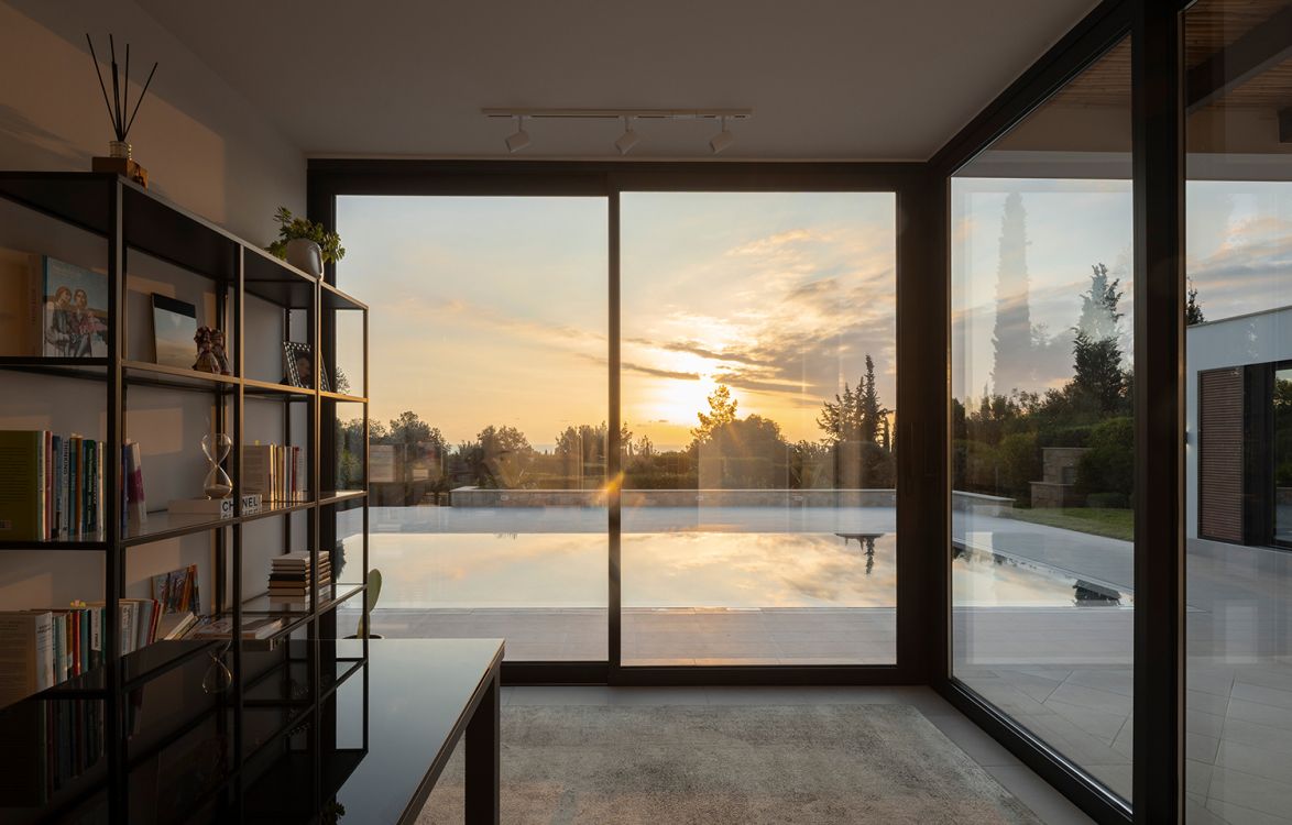 Located in Aphrodite Hills Resort, Villa 242 was an imitation of traditional architecture, characterized by unnecessary ornamentation. The challenge was to refresh it while preserving its original shell. The proposal removes superfluous elements, reshaping the interior layout for greater transparency, natural light, and open views, creating a bright and airy atmosphere. Large openings frame the southwest landscape, offering framed vistas toward the sunset and horizon.