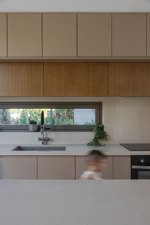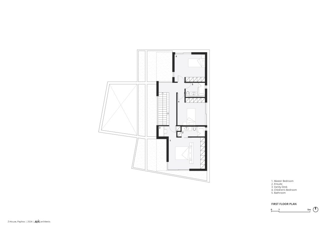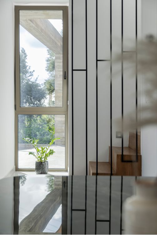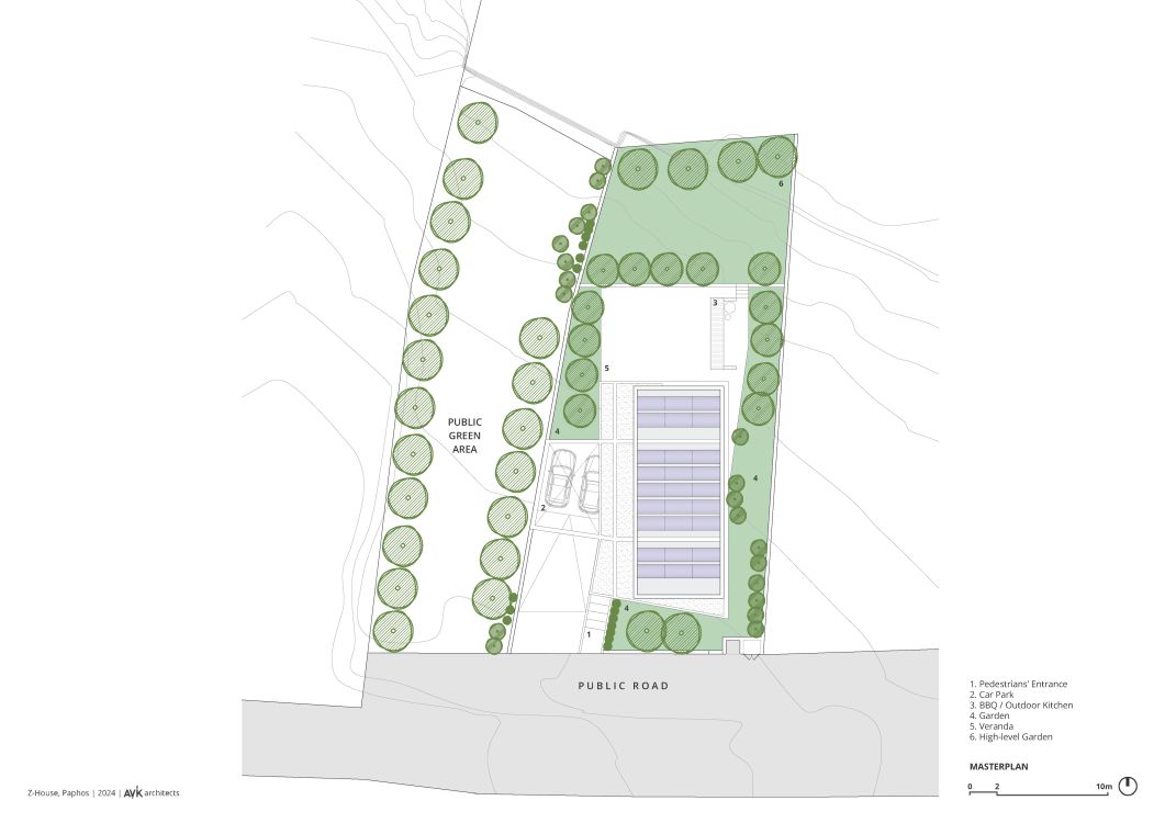 Z-House is a single-family residence designed for a family of four, situated on a site with minimal urban references and pronounced topographical variation. The house is conceived as a linear composition along a north–south axis, raised slightly above the street and set back to create a quiet threshold between public and private space.